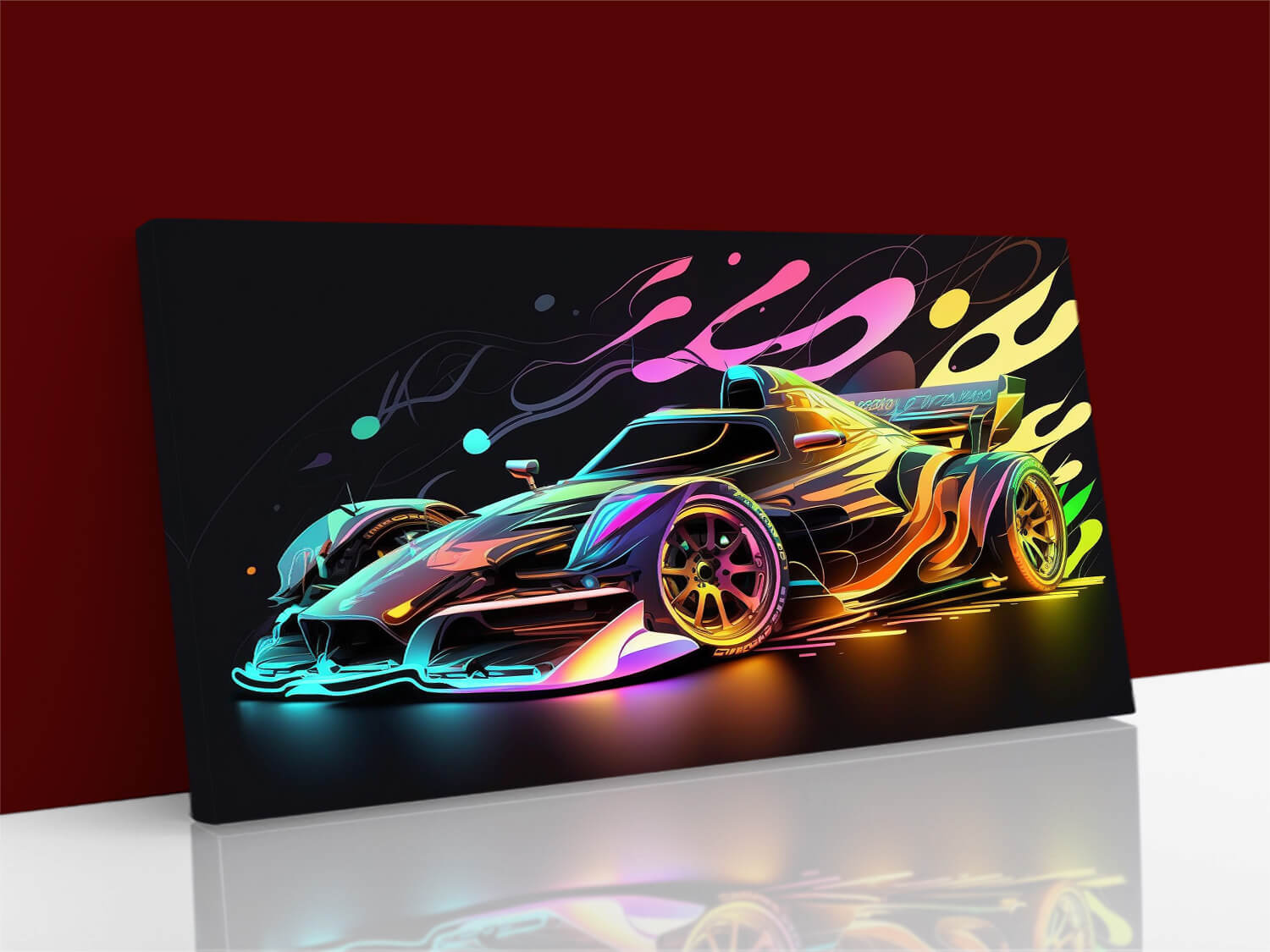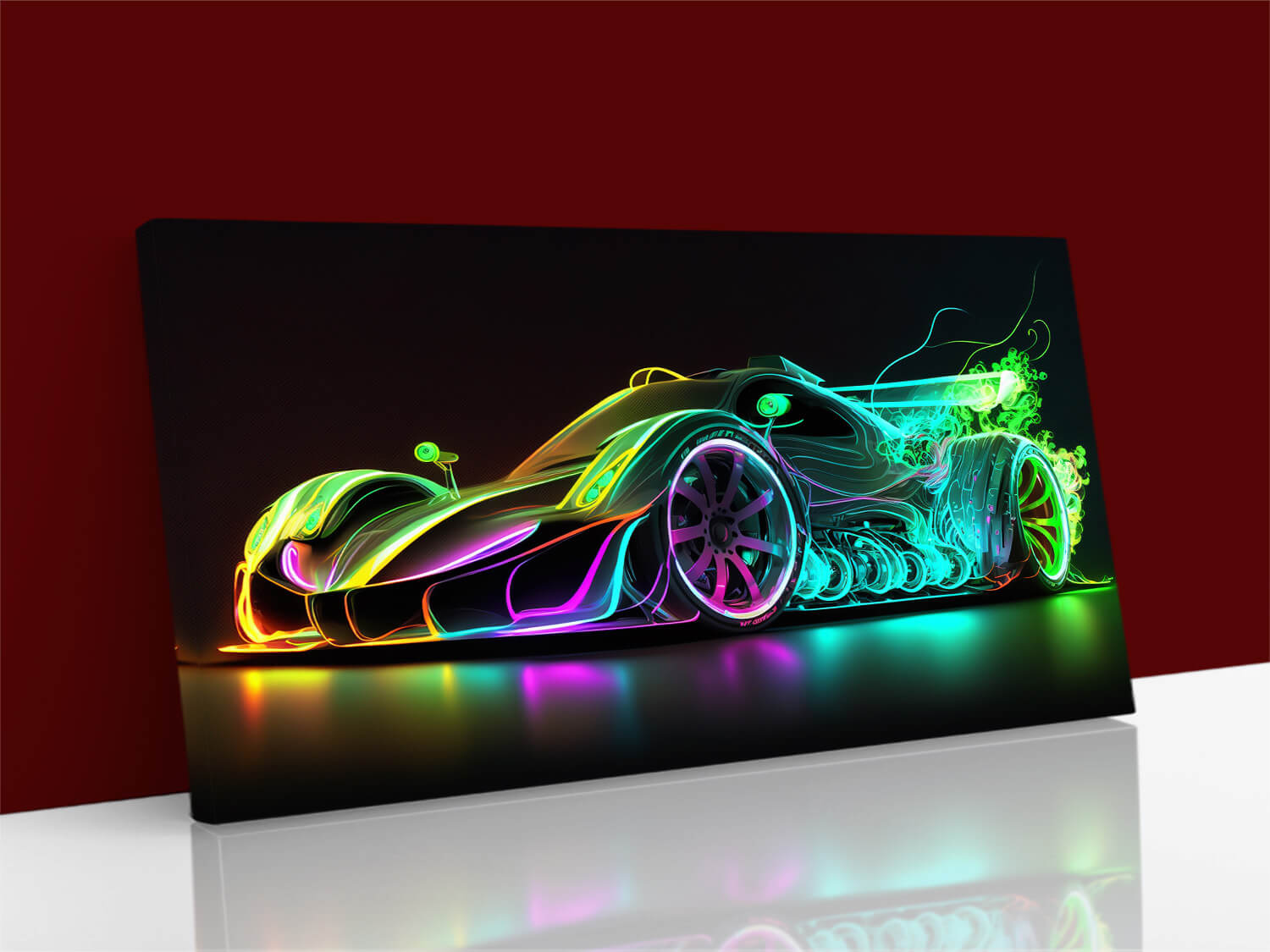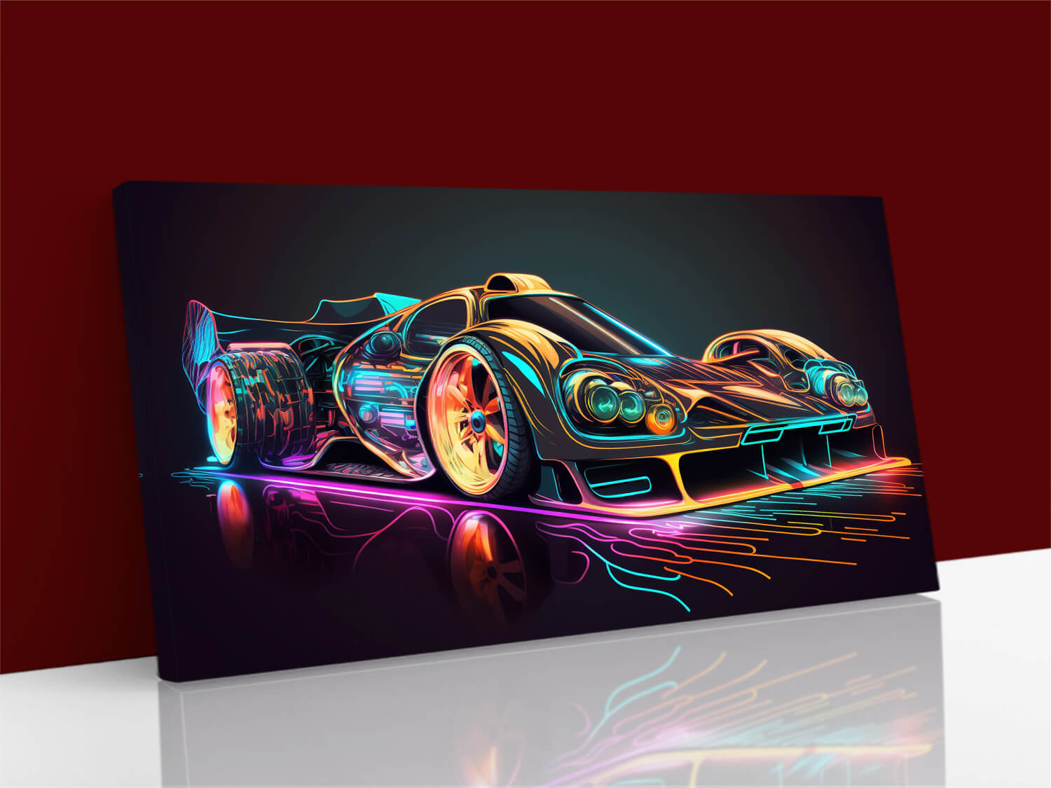 BULK PACKS Sport Car, Futuristic Racing Car, Neon drag race, Canvas Wall Art AOA13102